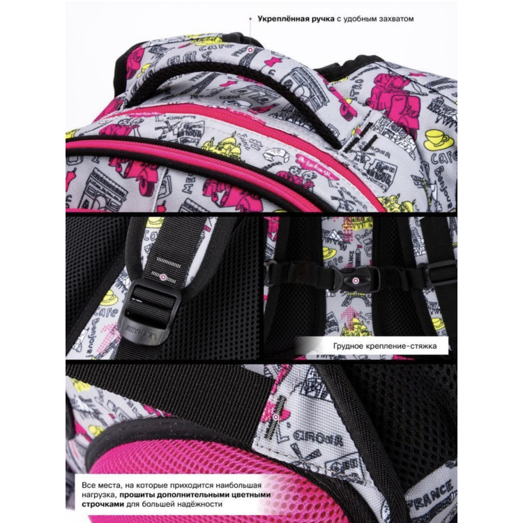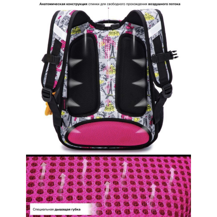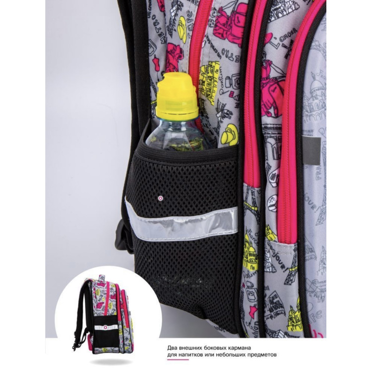 Светоотражающие элементы расположены на передней, задней и боковой частях рюкзака, для обеспечения безопасности в темное время суток.