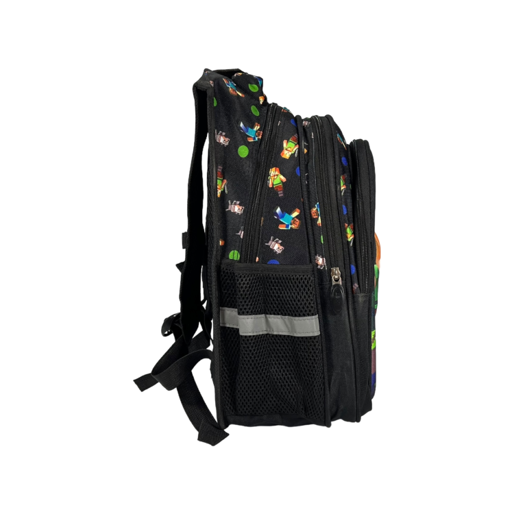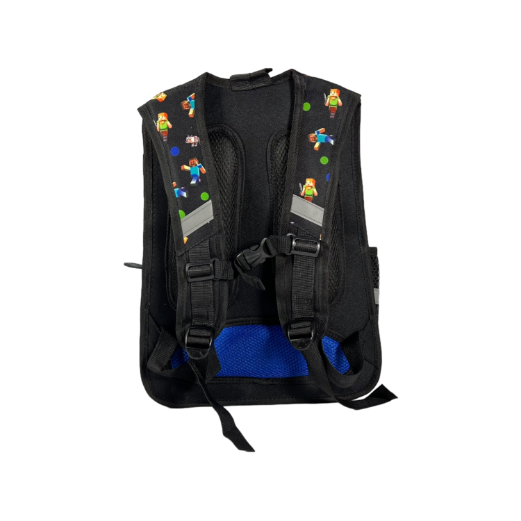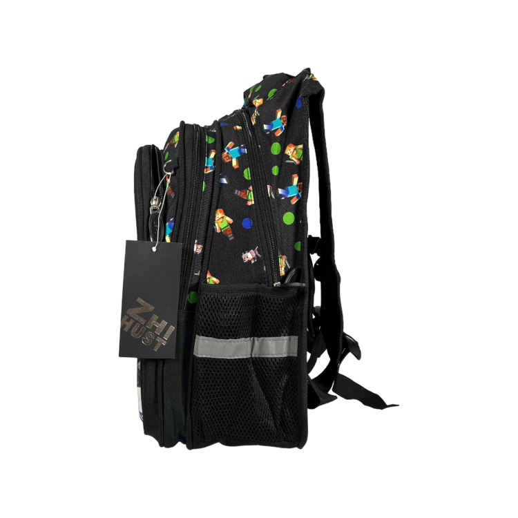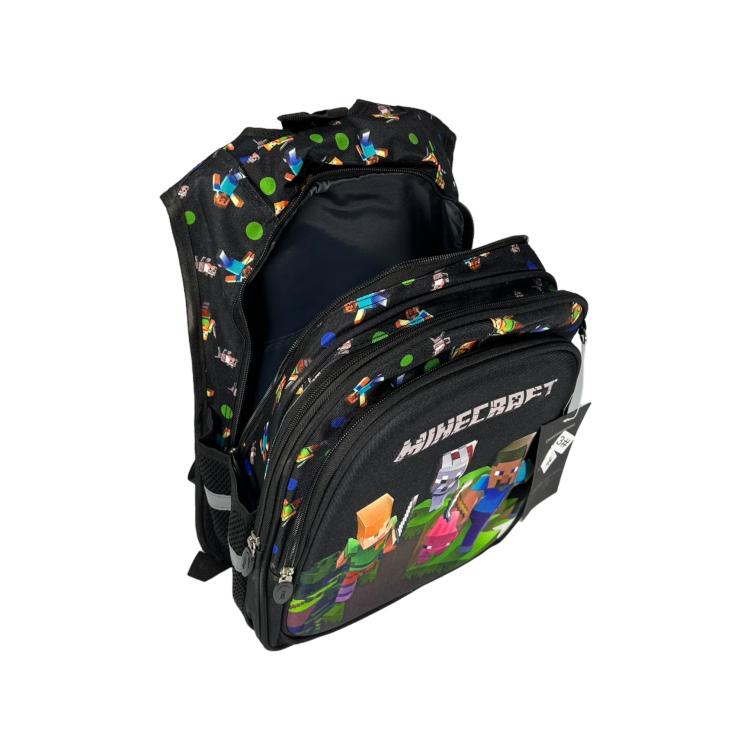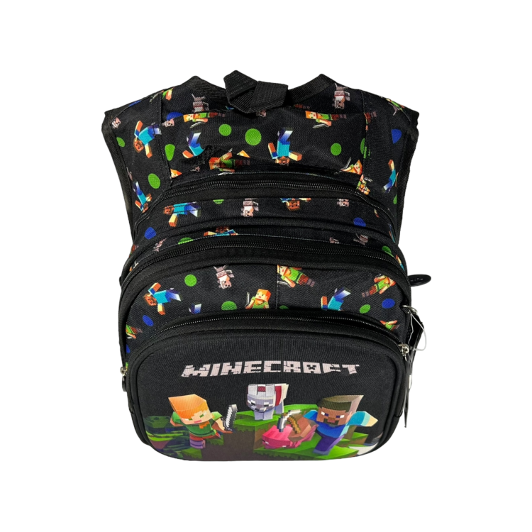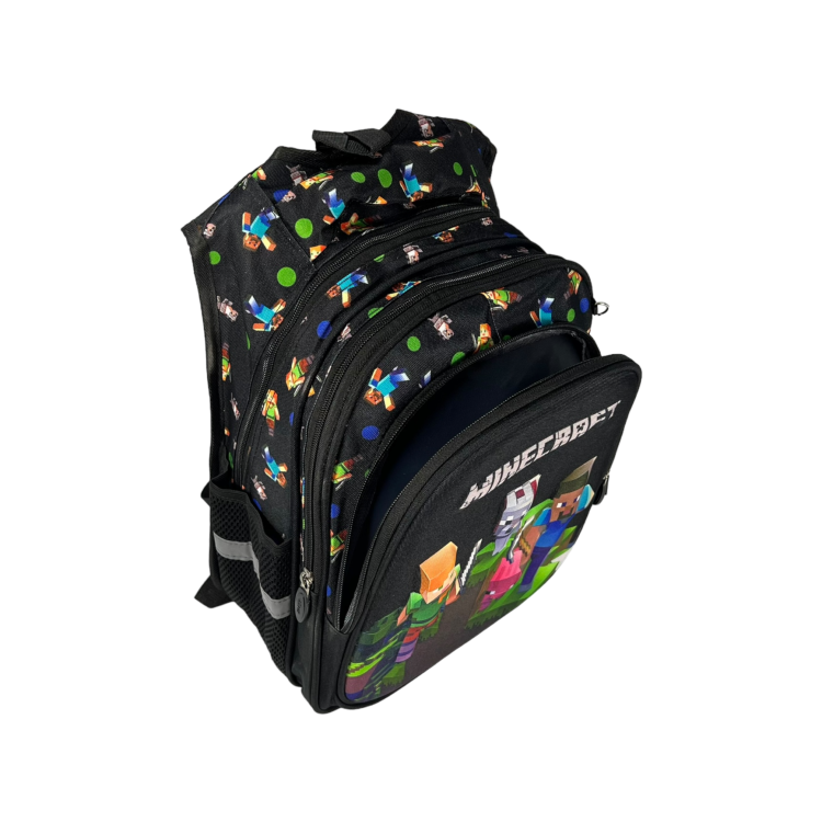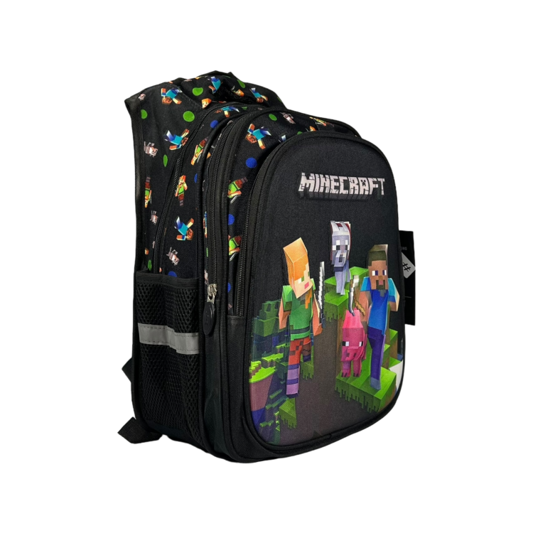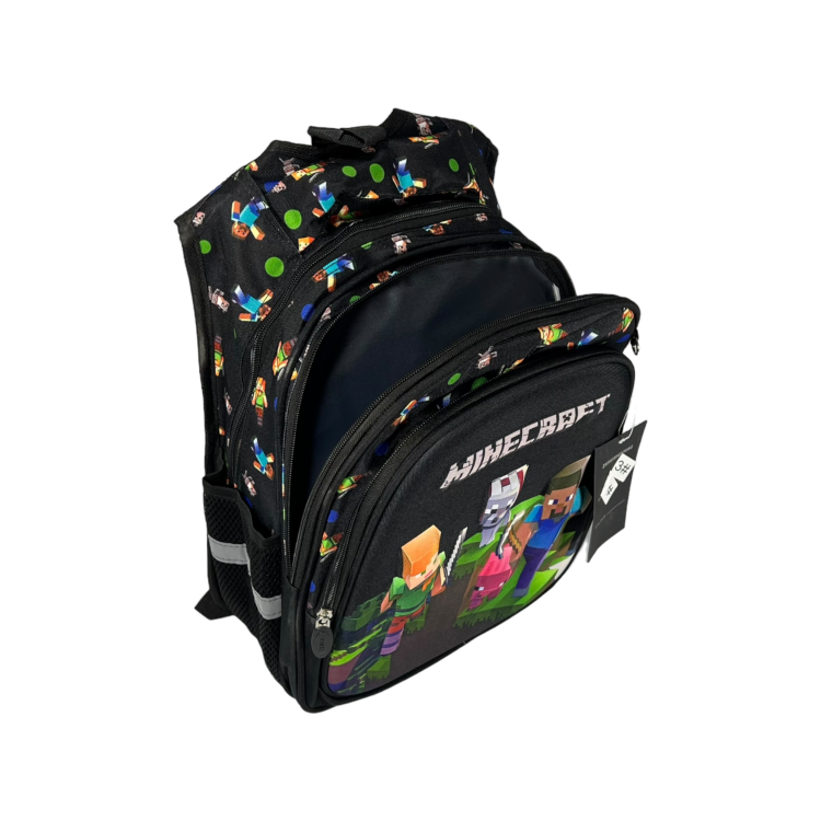 Стильный дизайн и принт: Рюкзак представлен в классическом черном цвете с принтом Minecraft, что делает его особенно привлекательным для маленьких фанатов игры и подходящим для любого стиля.