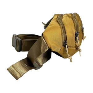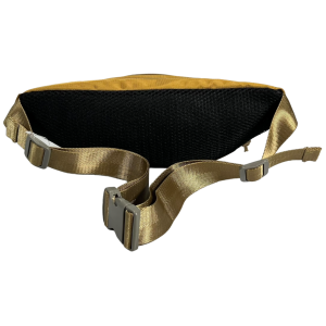 Сумка-бананка на три отделения, имеет приятный горчично-золотой цвет
