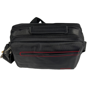 Комфортная и многофункциональная сумка через плечо, крепкая, 3 отделения, черная с красным