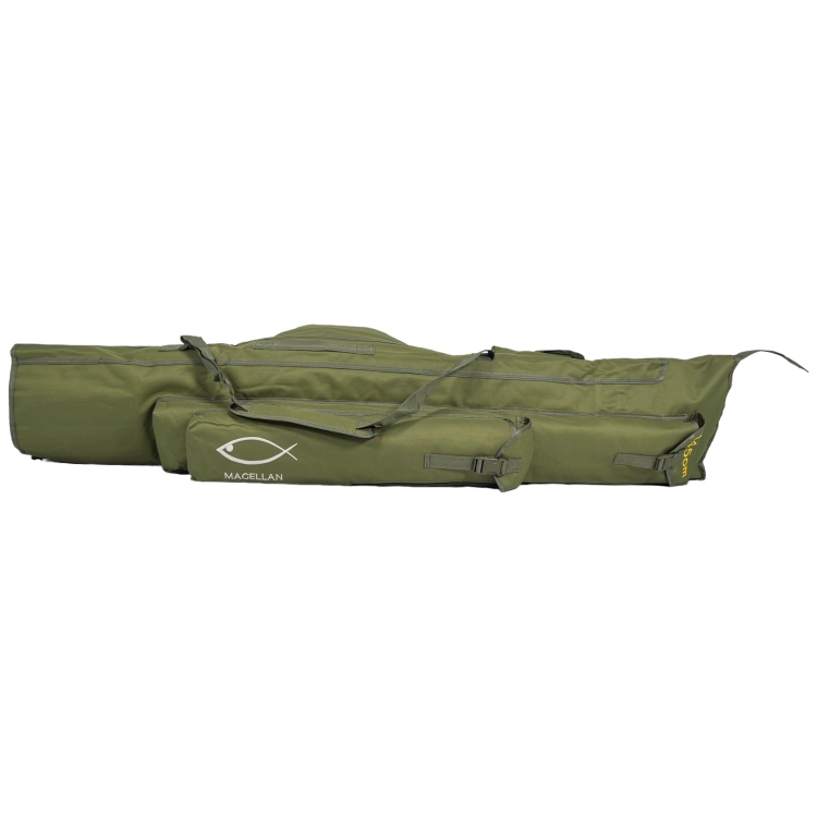 Этот чехол предназначен для удобной и безопасной транспортировки рыболовного снаряжения. Удобный, крепкий и функциональный, он обеспечивает надежную защиту ваших удочек и аксессуаров.