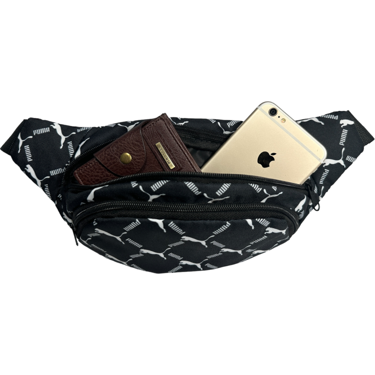 Сумка имеет два отделения со змейкой, что позволяет хранить вещи организованно. Удобный максимальный обхват ленты – до 120 см, позволяет комфортно носить сумку на талии или через плечо.