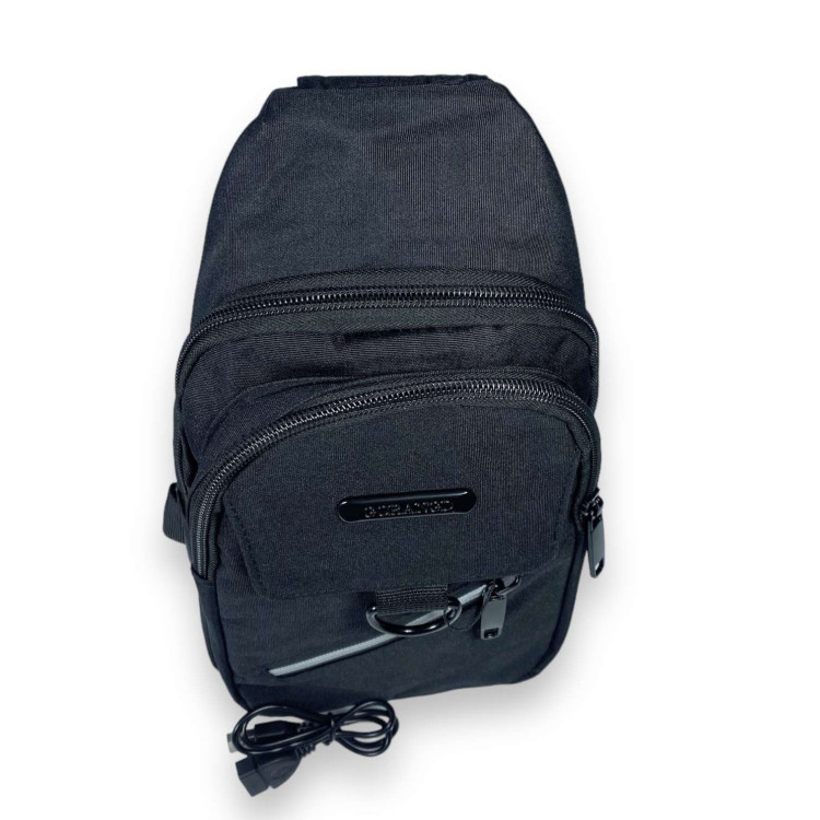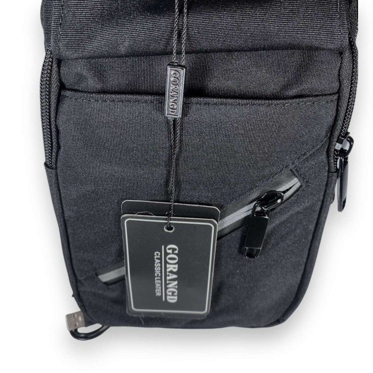 Слинг Gorangd, два основных отделения, USB+кабель, внутренний карман на замке, фронтальный карман открытый под клапаном, фронтальный карман на замке, размер: 30*17*8 см, черный.