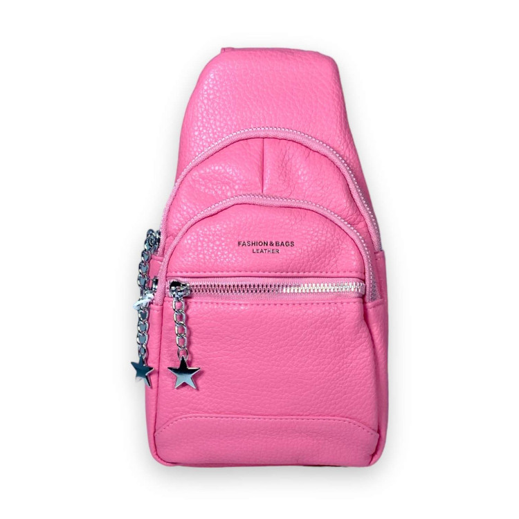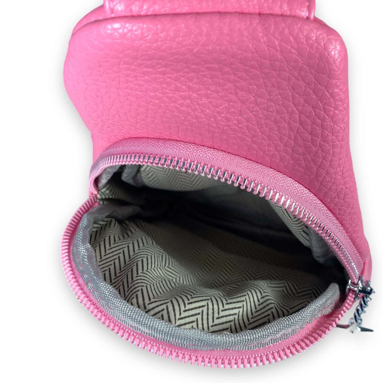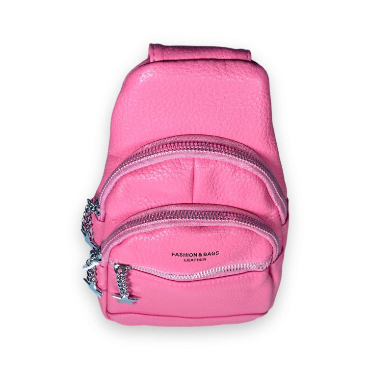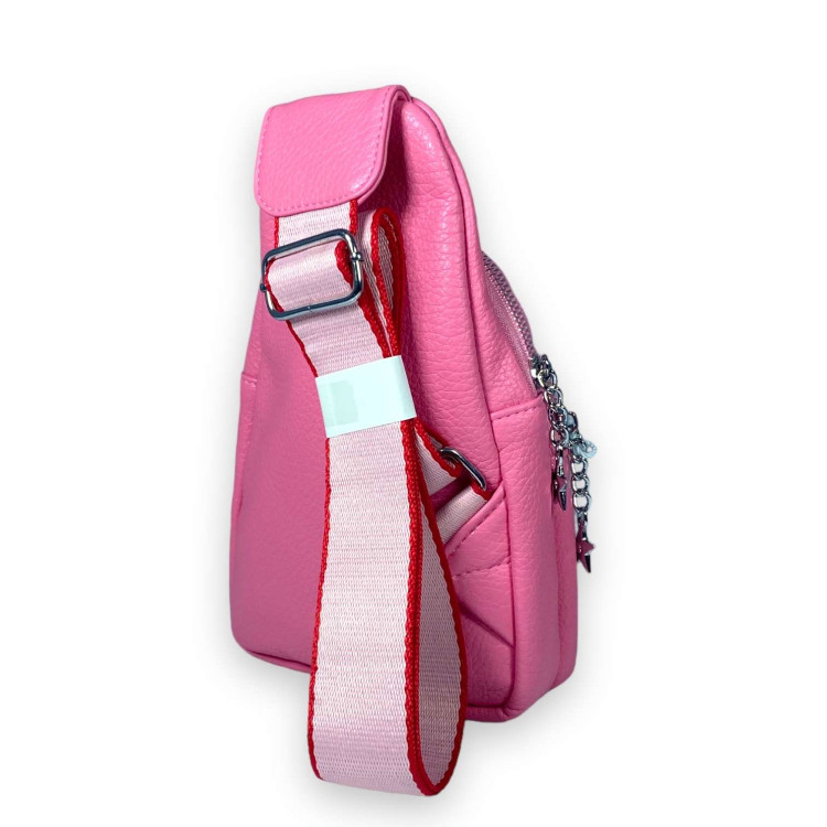 Слинг, сумка женская через плечо Fashion&bags, два отделения, один фронтальный карман на замке, экокожа, с одной лямкой, размеры 25*15*7 см, розовый.