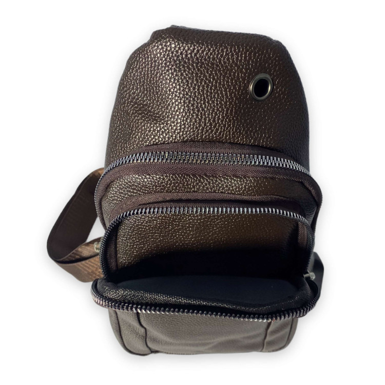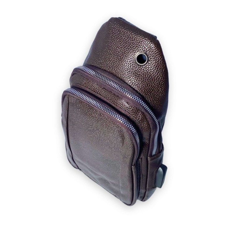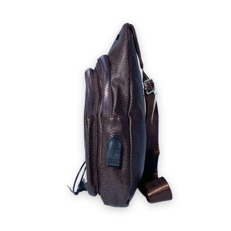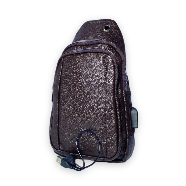 Сумка через плечо, слинг, один из самых удобных и популярных предметов повседневного обихода для мужчин. Такую сумку можно носить через плечо, на грудь или на спине. С целью обеспечить содержание сумки от случайного вскрытия, часто ее носят под верхней одеждой. Хорошим дополнением этой модели является разъем USB с кабелем, придающий комфортность в использовании такого аксессуара. Модель изготовлена из кожзаменителя, имеет два отдела, внутреннюю карман. Предусмотрено отверстие для наушников. Ремень тканевый прочный, регулируемый.