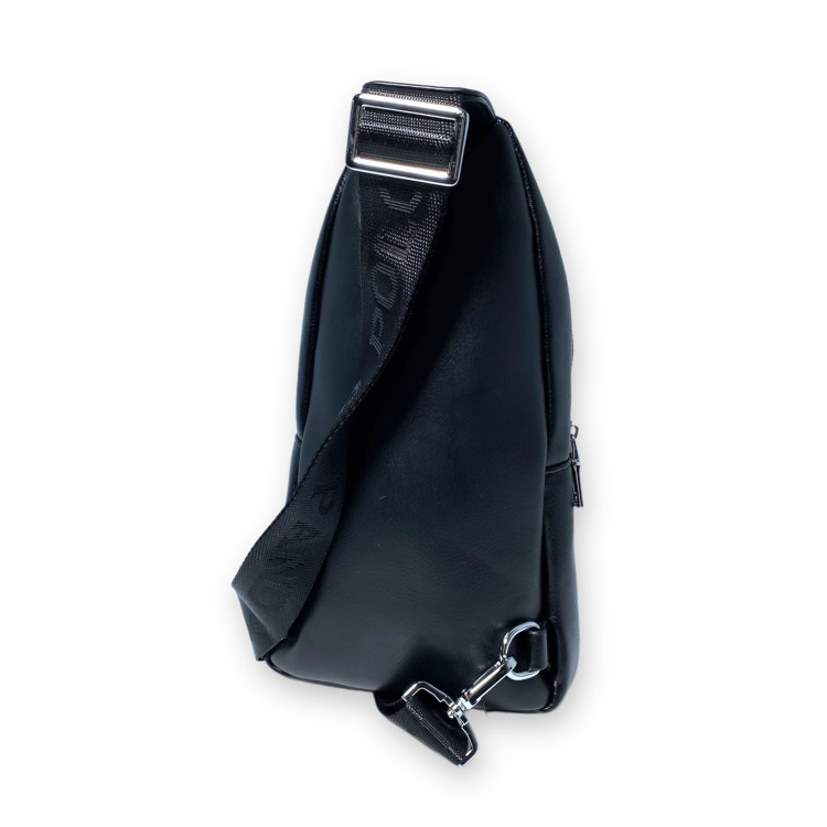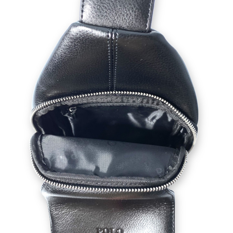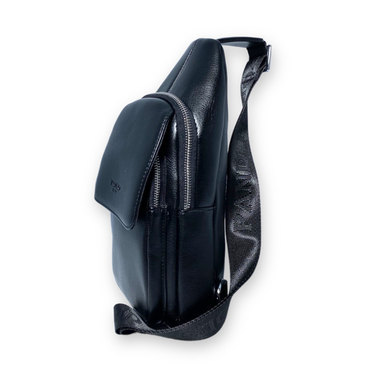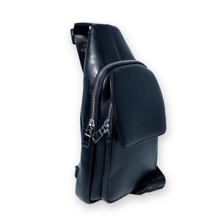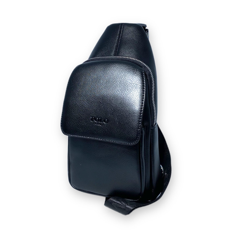 Сумка-слинг из искусственной кожи, мужская "Polo" один отдел, карман под клапаном, размер: 30*16*6 см черный