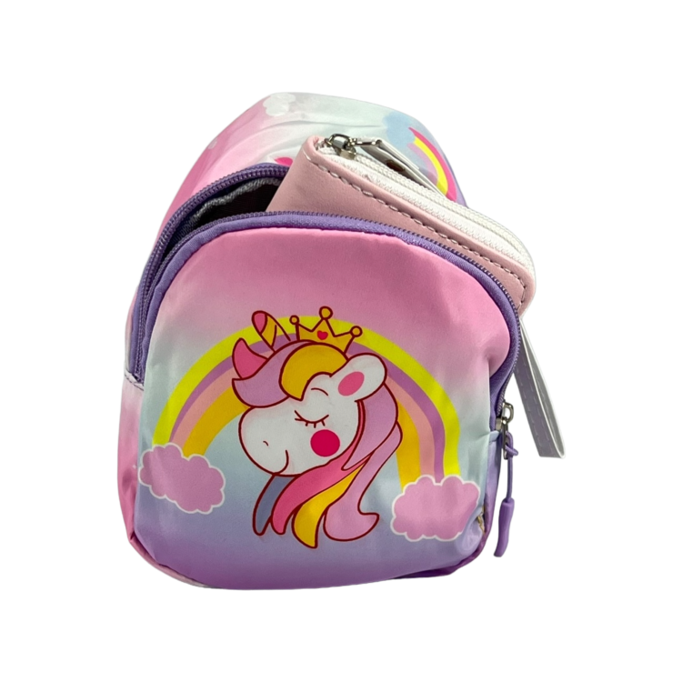 Сумка украшена ярким принтом с изображением единорога, что делает его привлекательным для детей. Этот оригинальный дизайн позволяет ребенку выразить индивидуальный стиль.