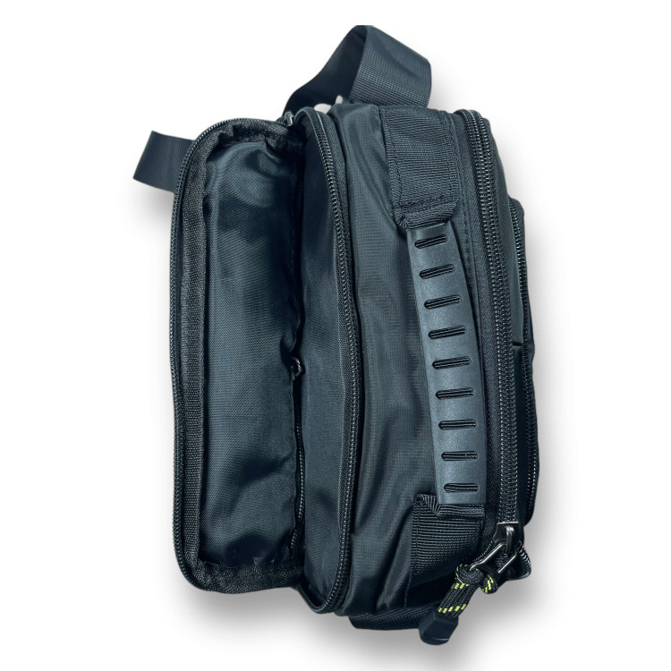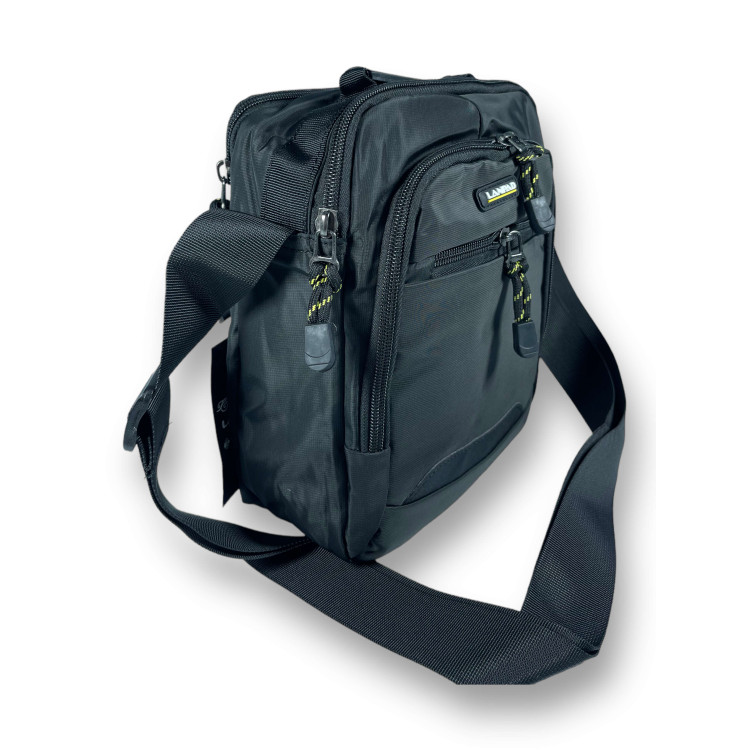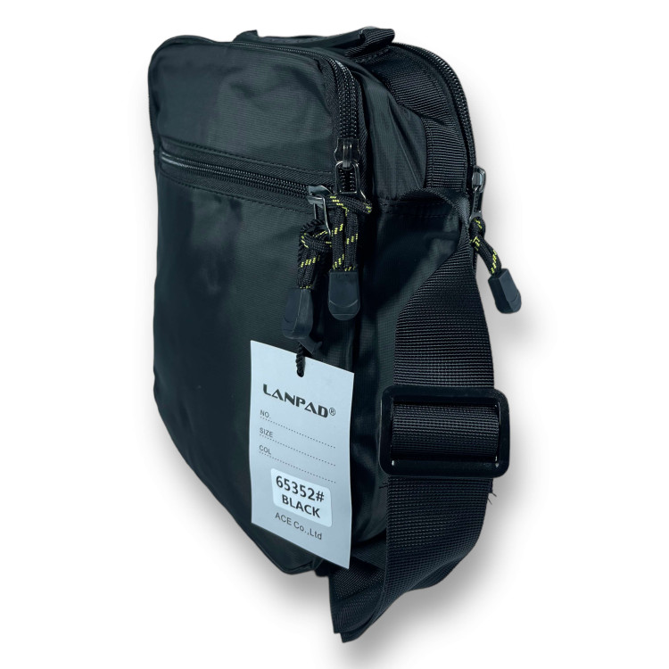 С этой сумкой сможете с легкостью совмещать работу, обучение и отдых. Внутреннее отделение на змейке обеспечивает дополнительную защиту для ценных вещей. Внутреннее отделение можно использовать для хранения маленьких предметов. Верхняя ручка позволяет носить сумку в руке. Мужская сумка через плечо Lanpad идеально подходит для повседневного использования. Она может использоваться для работы, обучения, прогулок или просто для повседневной носки. Основные характеристики: Тип: Сумка через плечо Размеры: 25 см x 23 см x 7 см Застежка: Змейка Цвет: Черный Материал: Нейлон Особенности: 1 внутреннее отделение без застежки 1 Верхняя ручка Пол: Мужской Размеры, см: 25 x 23 x 7 Функциональность: Регулируется наплечный ремень Объем: 4 литра Количество отделений: 2 Достоинства: Прочный и водонепроницаемый материал : Сумка имеет два отделения, в которых можно разместить телефон, кошелек, ключи или другие вещи. Внутреннее отделение на змейке обеспечивает дополнительную защиту для ценных вещей. Внутреннее отделение можно использовать для хранения маленьких предметов. Два внешних кармана на змейке пригодятся для быстрого доступа к мелким предметам. Верхняя ручка позволяет носить сумку в руке.