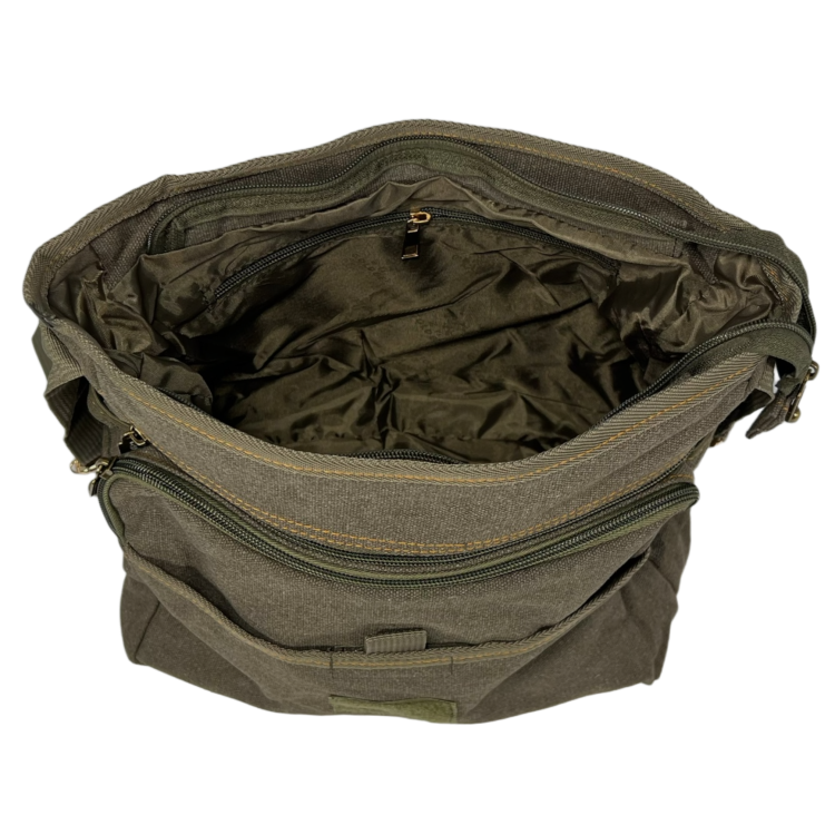Прочность и надежность: Изготовленная из высококачественного брезента, сумка выдерживает ежедневные нагрузки и защищает ваши вещи от внешних воздействий. Брезент прочный и износостойкий материал, гарантирующий долговечность аксессуара.