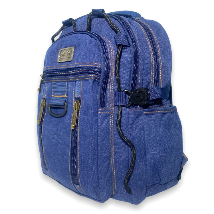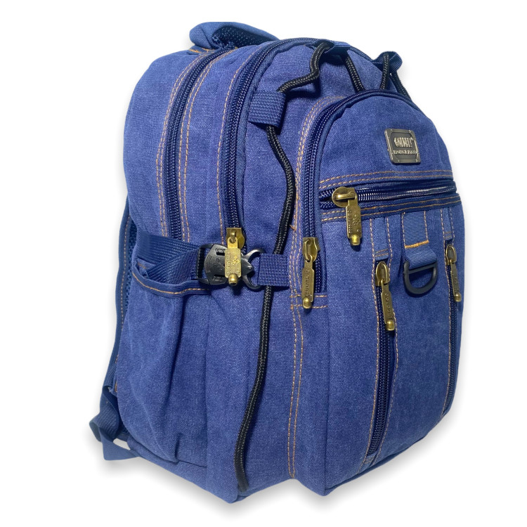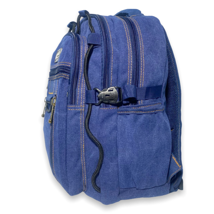 Рюкзак брезентовий, B257, три відділення, бічні кишені, фронтальні кишені, стяжки, внутрішні кишені, розміри 257 см, синій