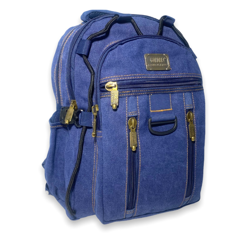 Брезентовий рюкзак, 20 л, синій, міцний, три відділення, бічні кишені