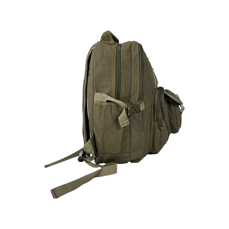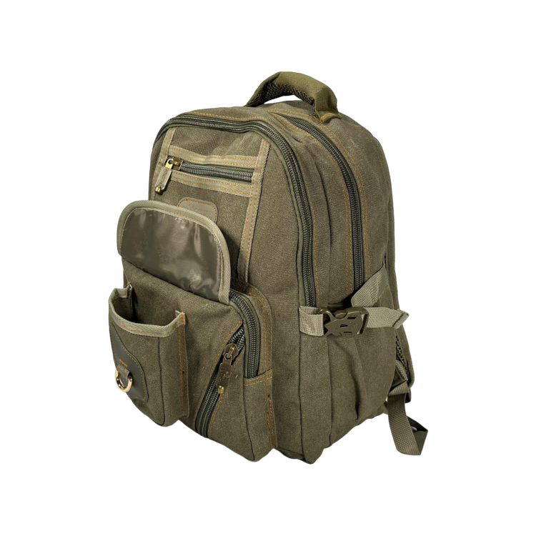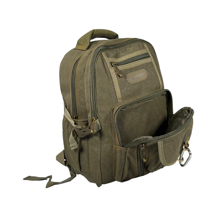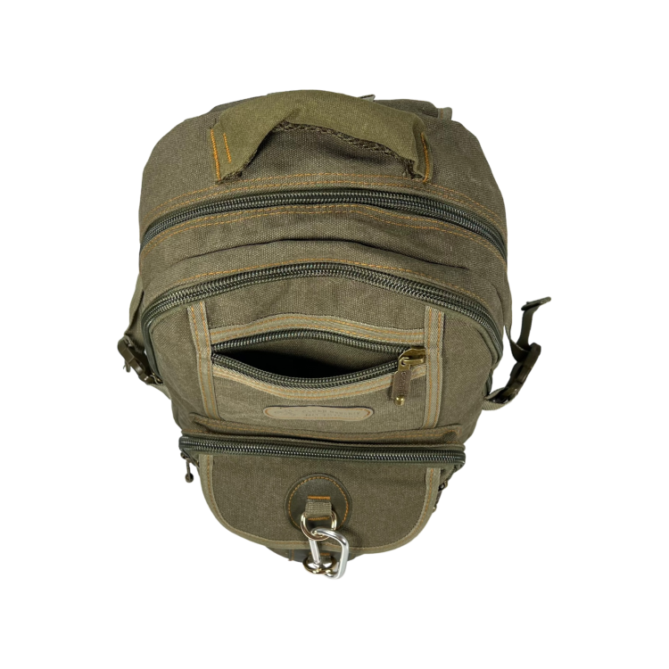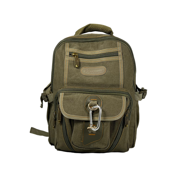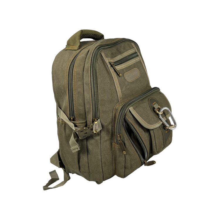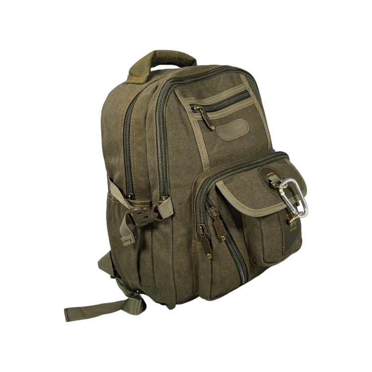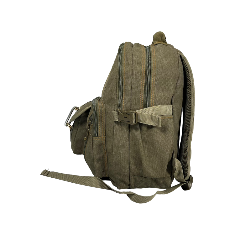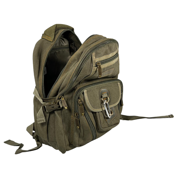 Міцність та надійність: Виготовлений з високоякісного брезенту, цей рюкзак відрізняється міцністю та довговічністю. Застібка на змійці та карабін забезпечують легкий доступ до вмісту рюкзака та надійне зберігання речей.