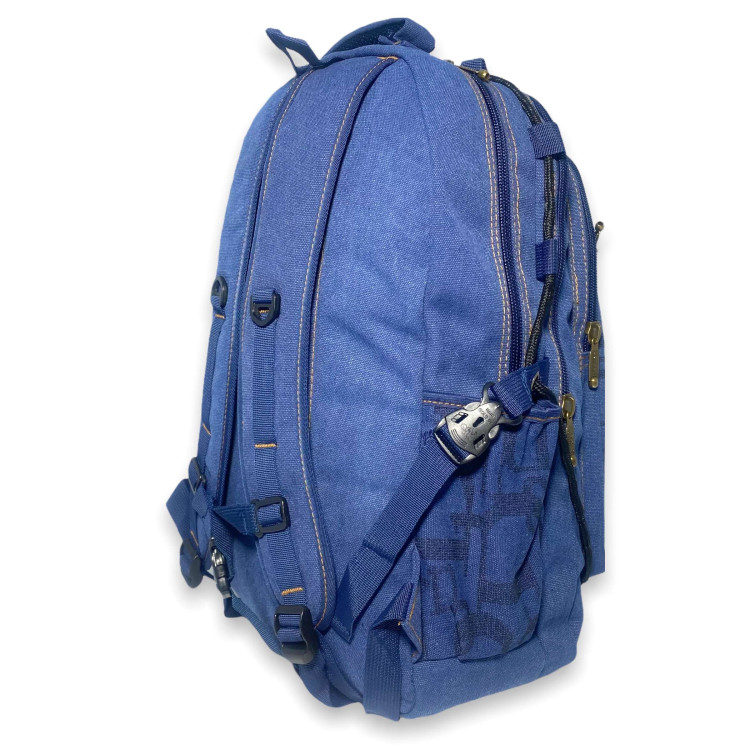 Рюкзак брезентовий, 257, три відділення, бічні кишені, фронтальні кишені, стяжки, внутрішні кишені, розміри 50*30*16 см, синій