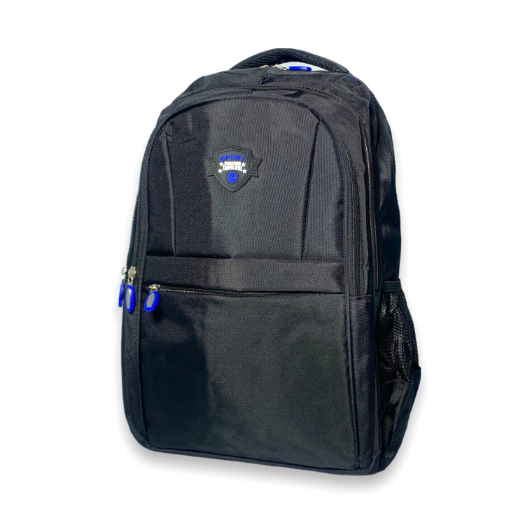 Рюкзак міський 20 л, три відділи, фронтальна кишеня, бокові кишені, розмір 45*30*17 см, чорний з синім