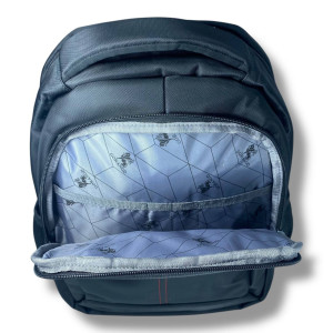 Виготовлений із водовідштовхувального текстилю, рюкзак має одне основне відділення, додаткові зовнішні та бокові кишені, а також органайзер для дрібниць. М'яка вентильована спинка та регульовані лямки з нагрудним ременем забезпечують комфорт під час носіння.