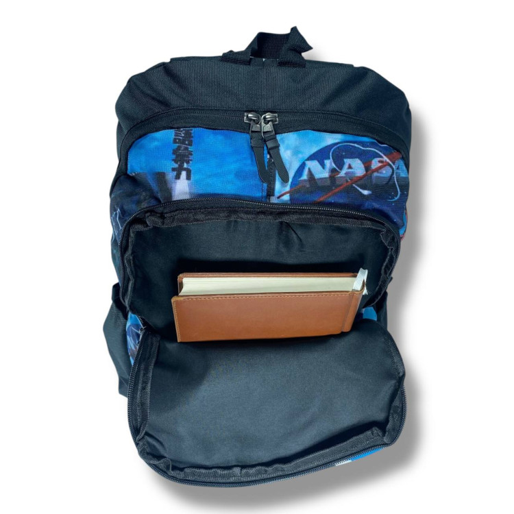 Міський рюкзак водовідштовхувальний чорний з принтом наса є відділення для ноутбука (до 15.4")