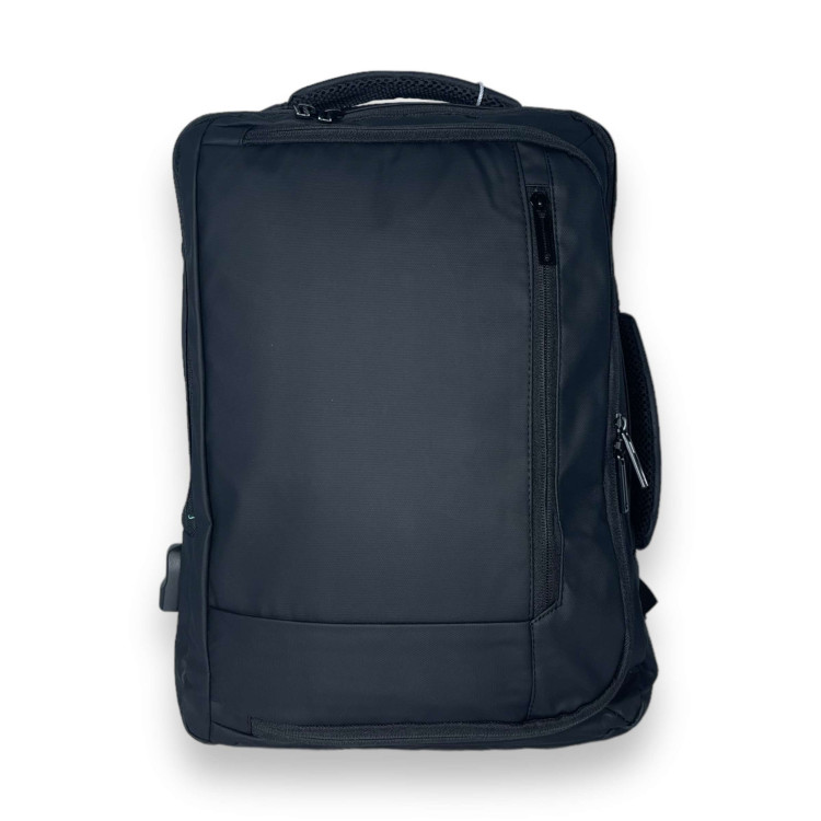 Рюкзак міський, 13 л, три основних відділення, одна фронтальна кишеня на замку, внутрішня м'яка кишеня, дві внутрішні відкриті кишені, USB+кабель, дві ручки для переносу, розмір 40*27*12 см, чорний.