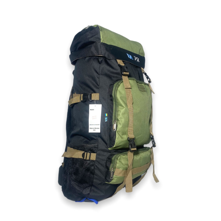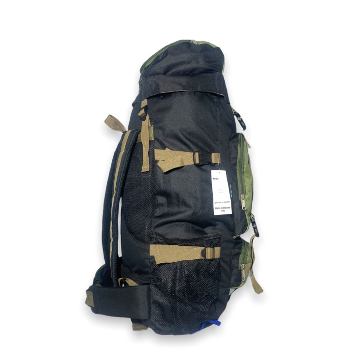 Туристичний, тактичний рюкзак T07 одне відділення дві фронтальні кишені, додаткові стяжки, бокові кишені сітчасті розмір75*40*20см, об"єм 75 л, хакі
