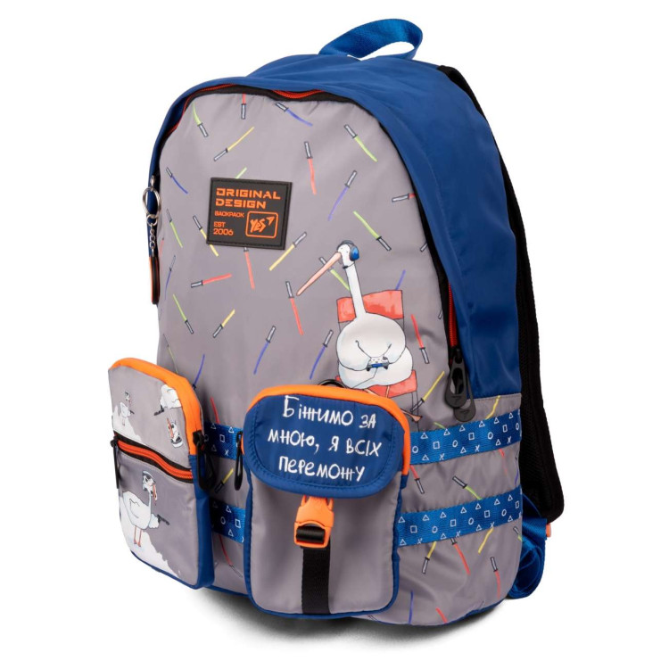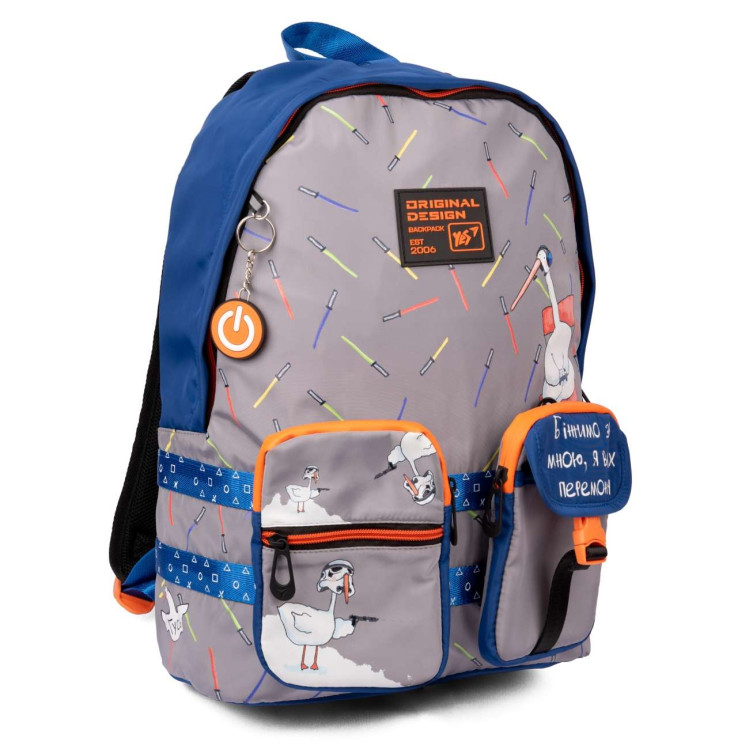 Шкільний рюкзак YES, одне основне відділення, дві знімні кишені, ущільнене відділення для гаджетів, органайзер, світловідбивні елементи, розмір: 44*31*14 см, сірий Гусь.