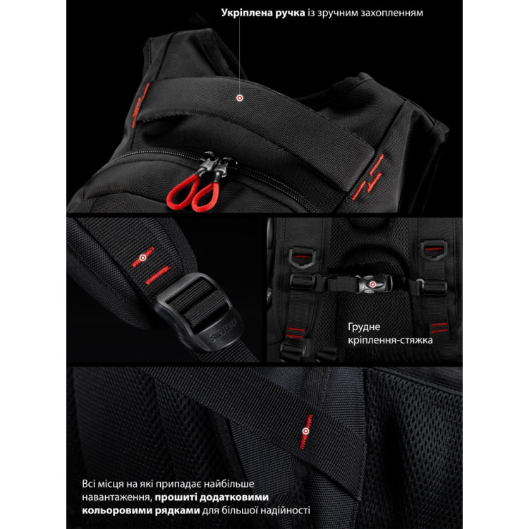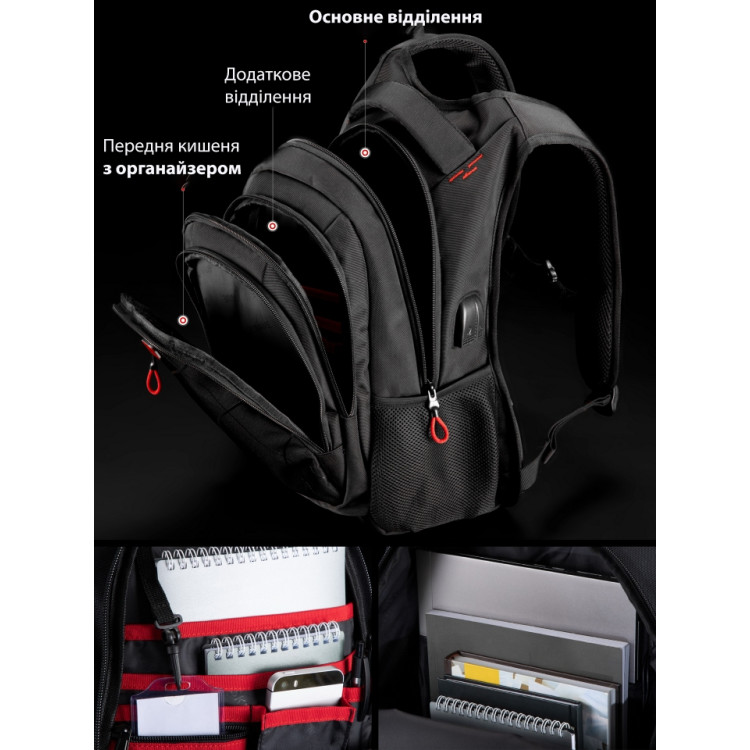 3 основних відділення + органайзер для гаджетів та дрібниць.