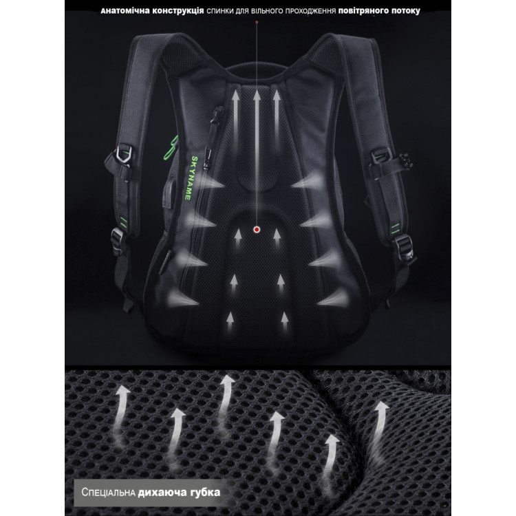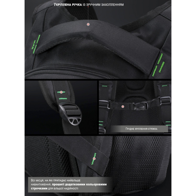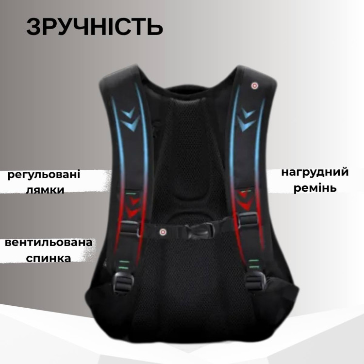 Плечові вентильовані лямки доповнені грудним кріпленням.