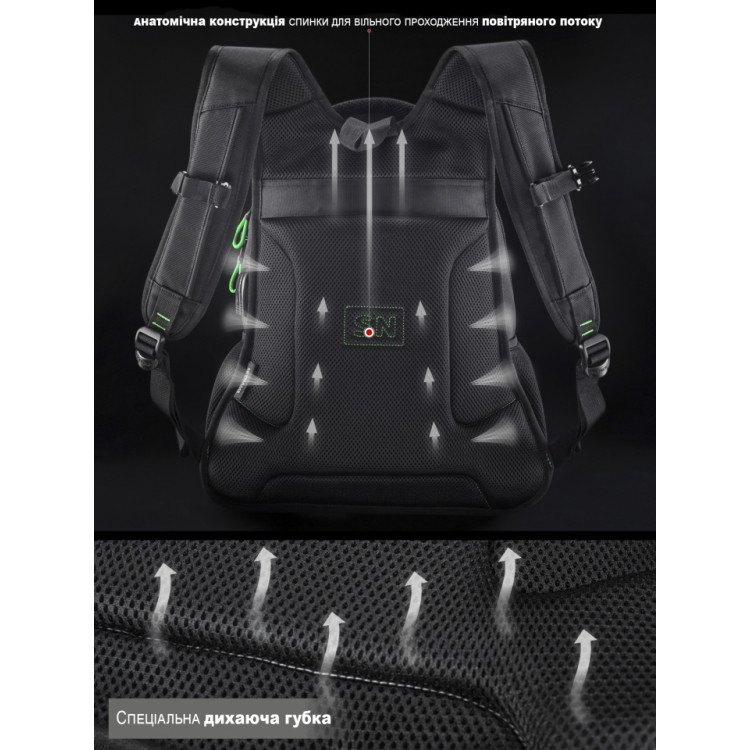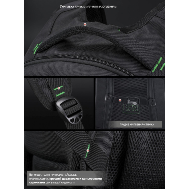 Плечові вентильовані лямки доповнені грудним кріпленням.
