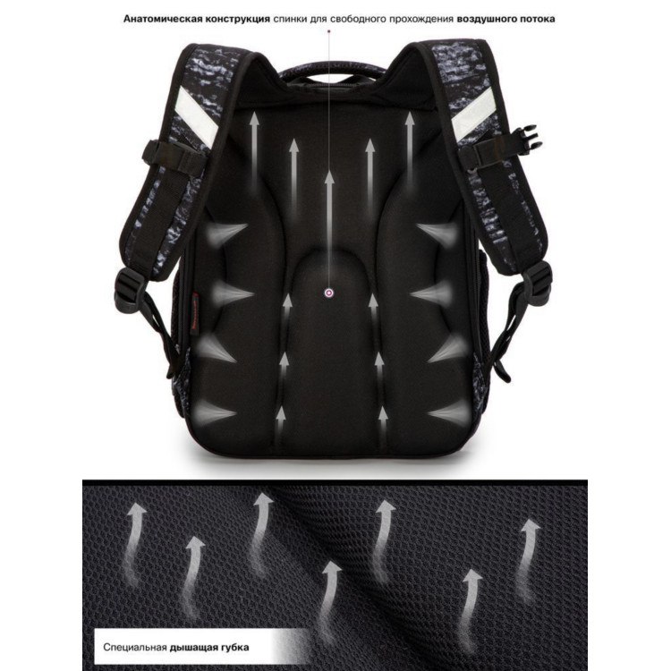 Полегшений каркас ранцю виготовлений за жорстко-каркасною технологією, що забезпечує правильну ергономічну форму. Каркас не деформується при навантаженні і розподіляє вагу по всій площі ранцю.