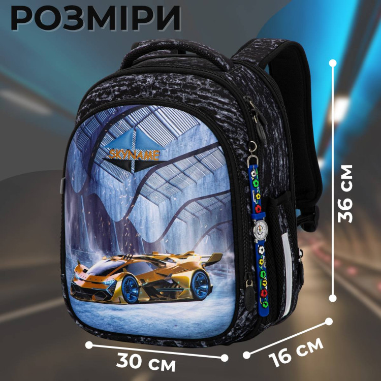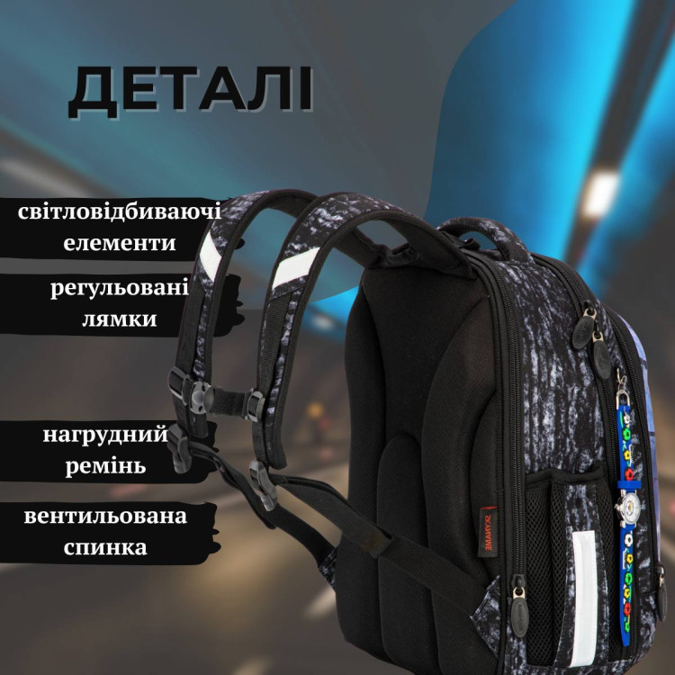 Світловідбиваючі елементи розташовані на передній, задній і бічний частинах ранцю для забезпечення безпеки в темний час доби.