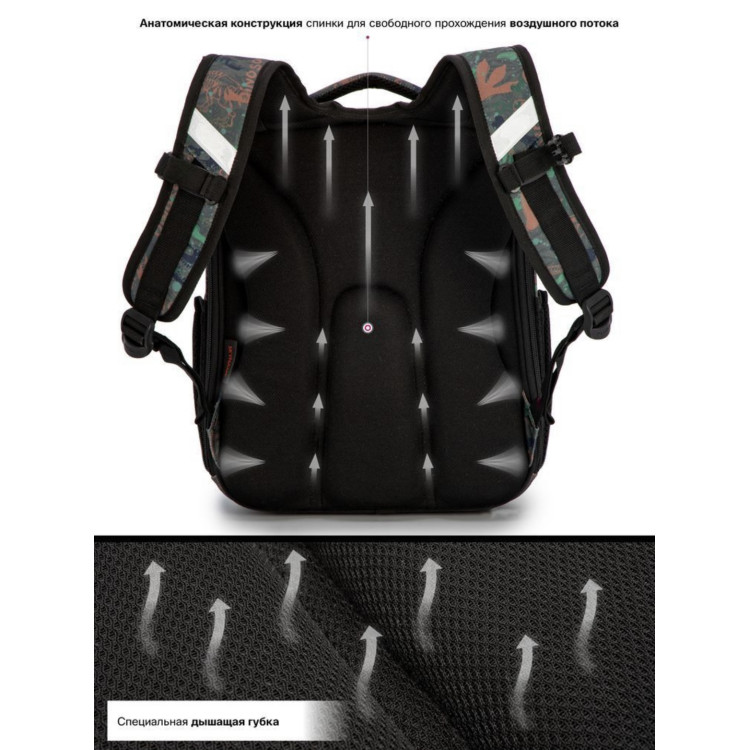 Полегшений каркас ранцю виготовлений за жорстко-каркасною технологією, що забезпечує правильну ергономічну форму. Каркас не деформується при навантаженні і розподіляє вагу по всій площі ранцю.