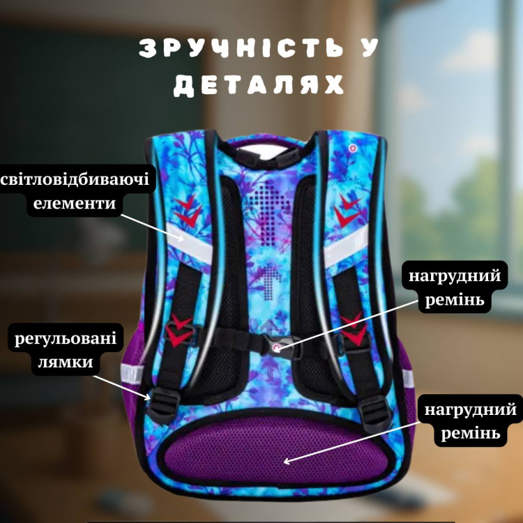 Світловідбивні елементи розташовані на передній, задній та бічній частині рюкзака, для забезпечення безпеки у темний час доби.