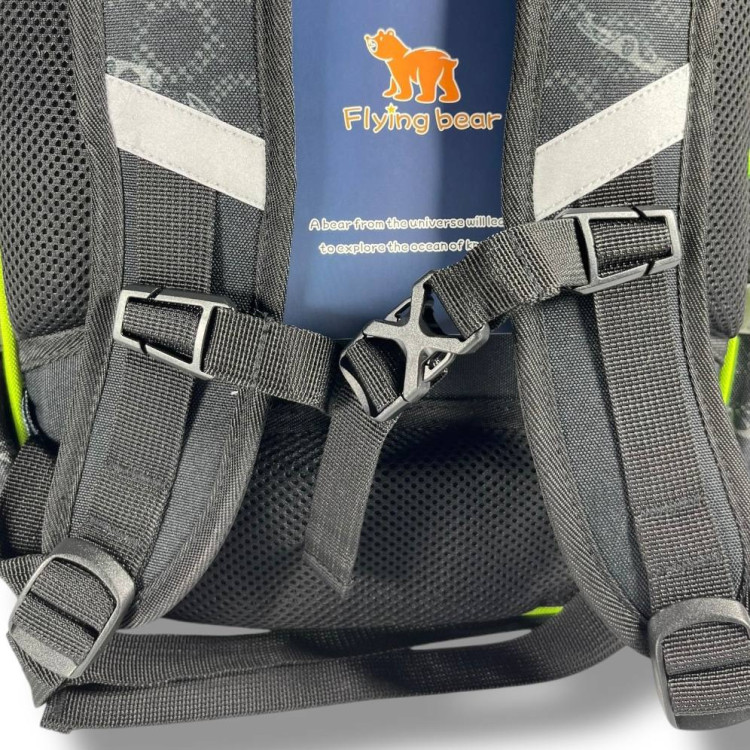 Ортопедична спинка з вентиляційними каналами, м’які регульовані лямки та нагрудний ремінь забезпечують правильну посадку і знижують навантаження на спину дитини.