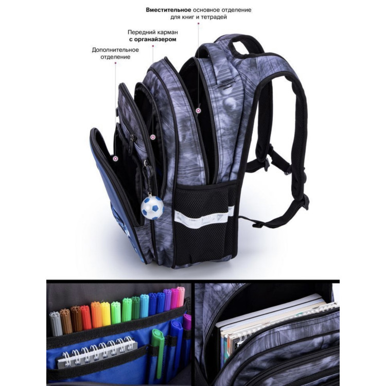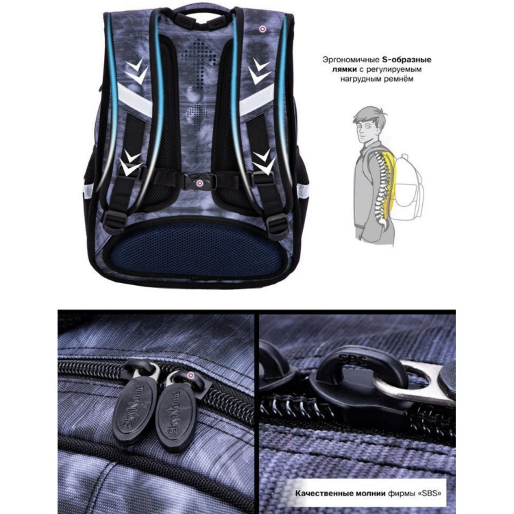 Світловідбиваючі елементи розташовані на передній, задній та бічній частині рюкзака, для безпечного перебування у темний час доби.