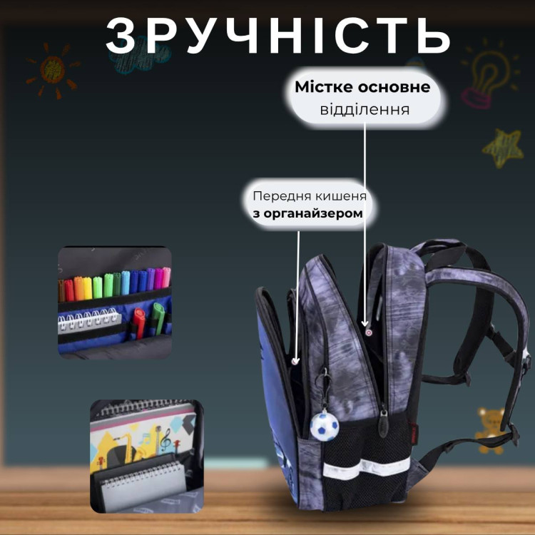 Третє відділення з органайзером для письмового приладдя, прикрашене об'ємною 3D картинкою.