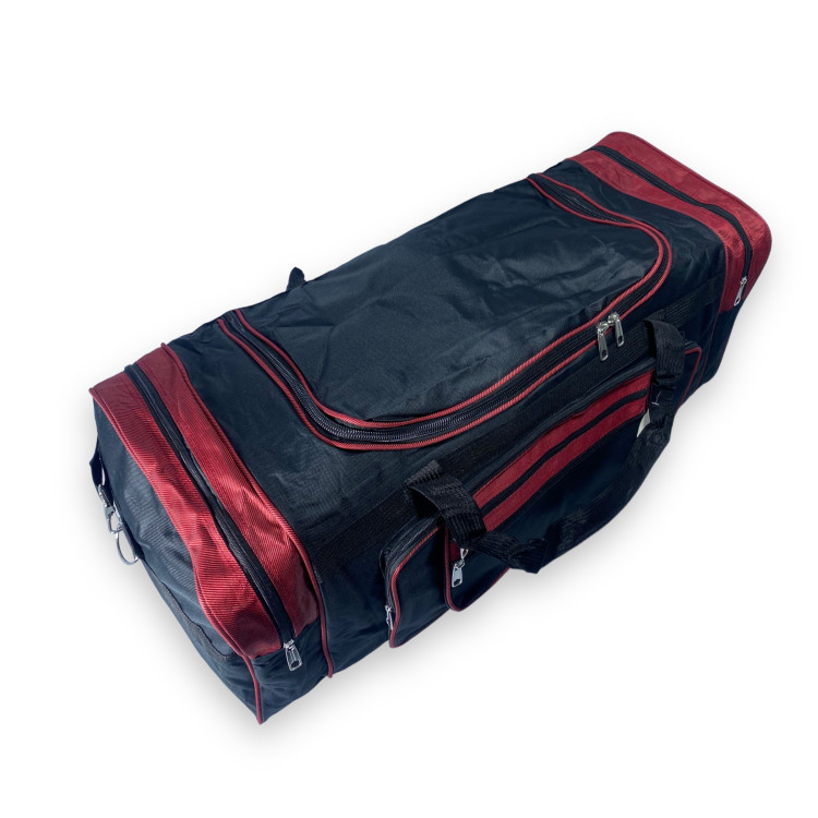 Дорожня сумка велика, 98 л, одне відділення, бокові кишені, ремінь, розмір 80*35*35 см, чорно-червона