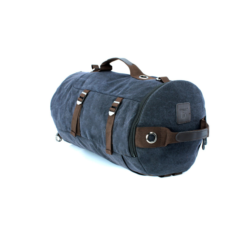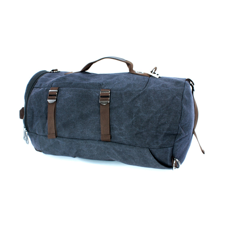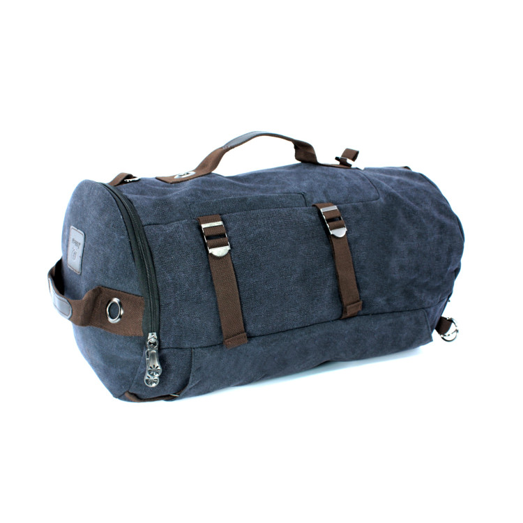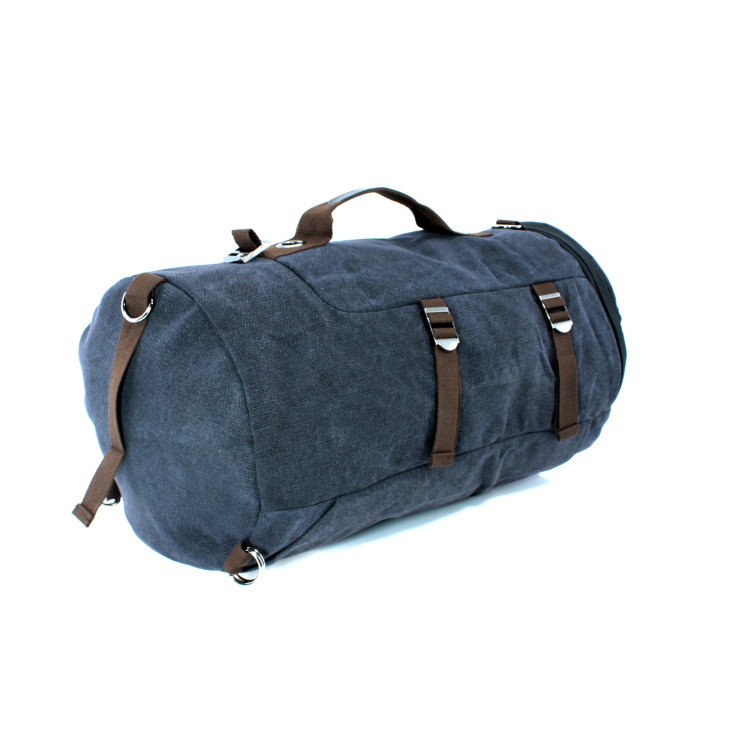 Дорожня сумка-рюкзак LS151-1 брезентова тканинні ручки наплічний ремінь, кишені лямки розмір 50*32*25 см чорна