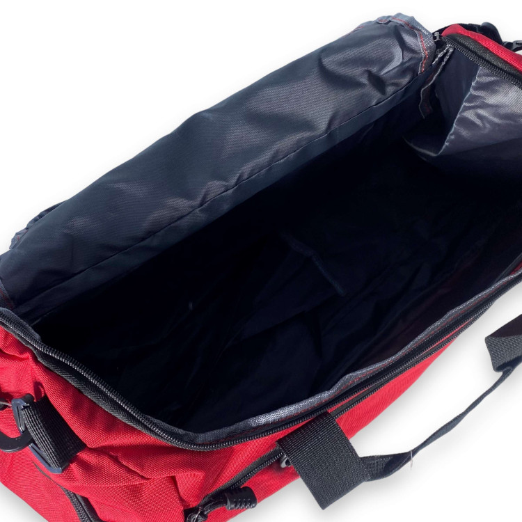 Спортивна сумка 1910-2, одне основне відділення, одна бічна кишеня для взуття, одна фронтальна кишеня на замку, з'ємний ремінь 110 см, розмір 50*28*25 см, червоний.