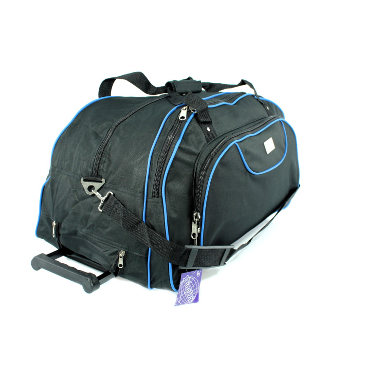 Сумка на колесах, практичний спосіб перевезення великої кількості речей. Завдяки рухомим коліщаткам - сумку легко переміщати асфальтом, в аеропорту або на вокзалі. До того ж виглядає така сумка дуже стильно. У сумці передбачено два відділення. Одне основне та друге трохи менше. Є фронтальна кишеня на блискавці. Міцна телескопічна ручка довжиною 103 см. У комплект входить плечовий тканинний ремінь, що регулюється максимальною довжиною 140см. Виробником передбачені міцні тканинні ручки з петлею на липучці.
